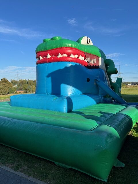 Tritt ein in das riesige Maul des Dschungelkönigs! Unsere spektakuläre Krokodil-Hüpfburg ist das absolute Highlight auf jeder Veranstaltung – ein Mix aus Nervenkitzel, Bewegung und grenzenlosem Spaß.